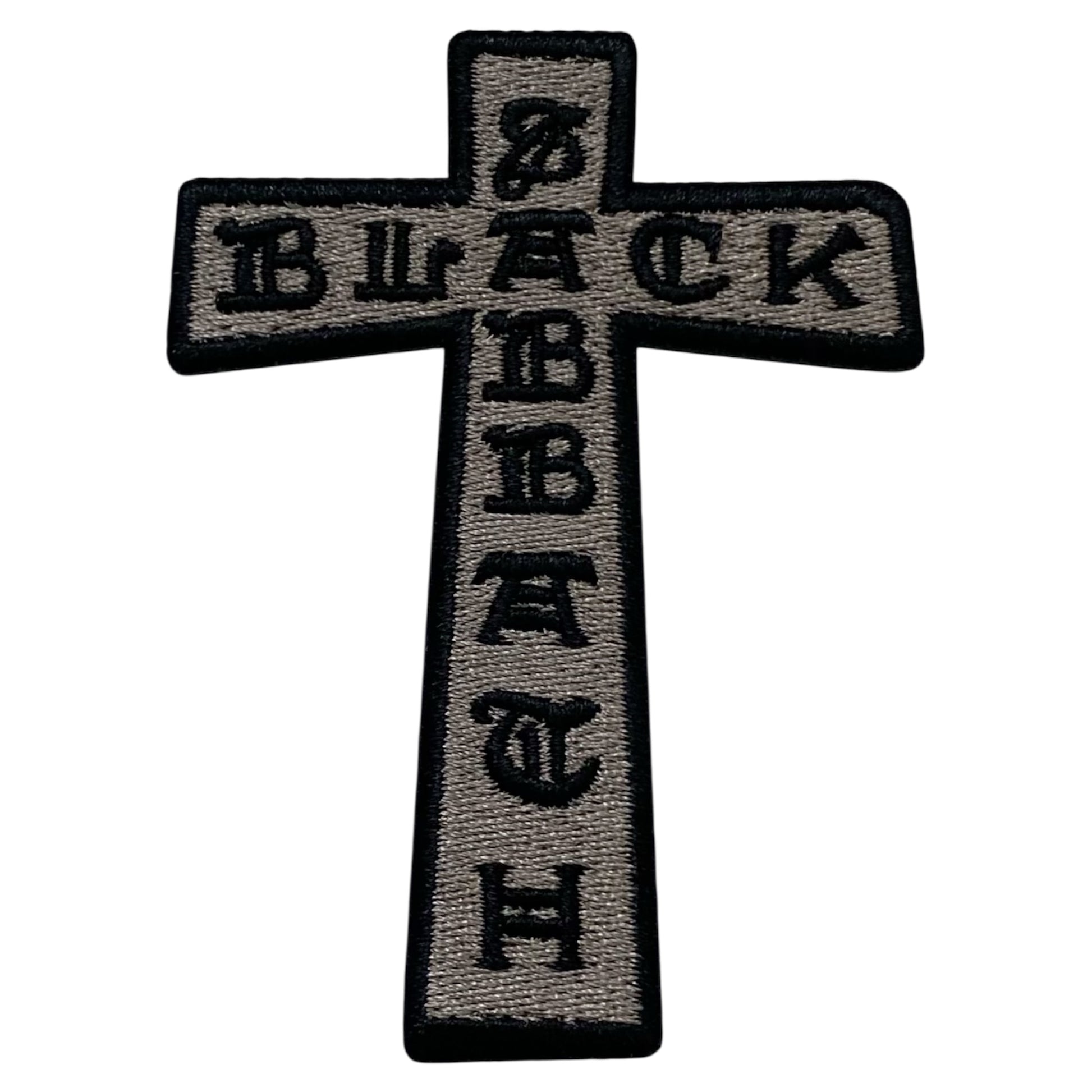 Black Sabbath woven, sew-on patch featuring the iconic cross symbol.