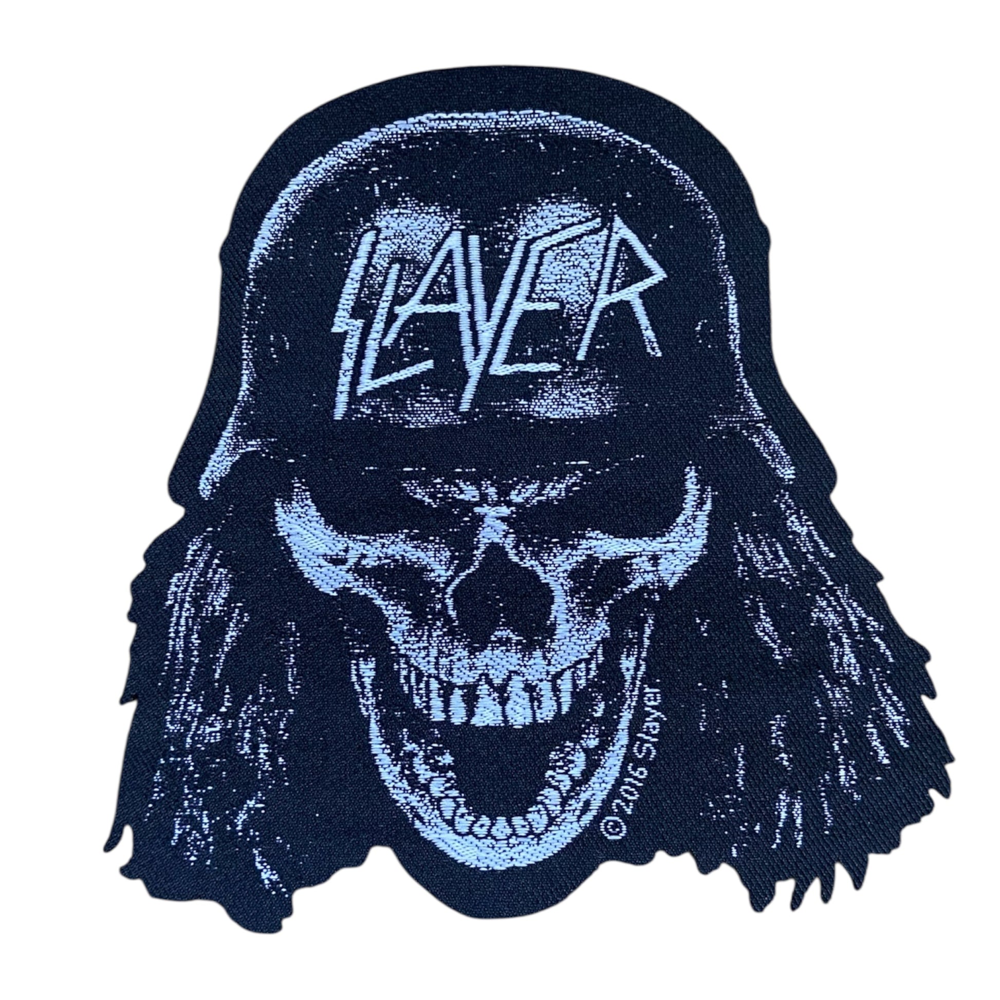 Slayer Wehrmacht Skull cut out, woven, sew-on patch.